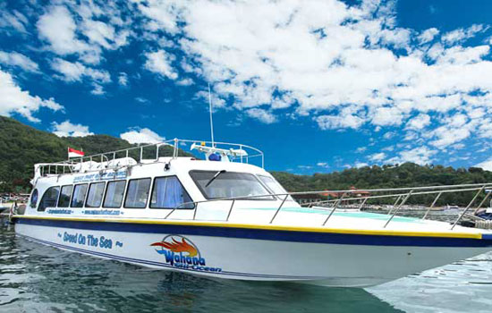 A new brand of the fastest and most spacious speed boat shuttle service to escape from Bali to Lombok and Gili Trawangan. Wahana Gili Ocean offers the fastest transfer and possible crossing of the sea in only an hour. The route of transfer offered by Wahana Gili Ocean is only from Padangbai to Lombok (Senggigi), Gili Air, Gili Trawangan and return. The fast boat accommodates up to 32 and 60 passengers at a cruising rate of 30 knots in a comfortable room. The boat vessel’s full convenience of customized seating, a sun deck, a cabin entertainment system, and clean facilities ensures, crossing Lombok and Gili Island from Bali only one and half hours.